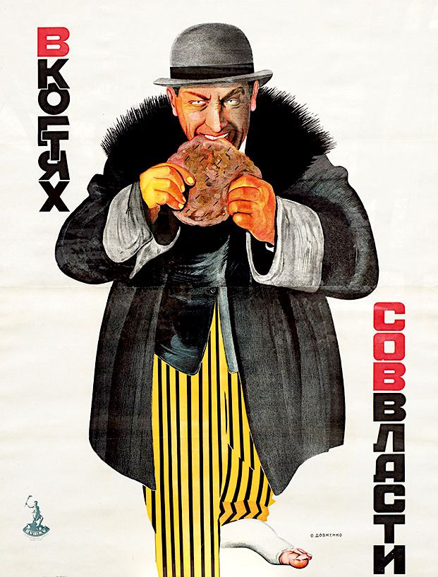 Se presentaron las siguientes acusaciones contra la principal organización cinematográfica soviética: «La producción cinematográfica soviética cuenta con decenas de películas perfectamente aptas para el campo. Pero Sovkino sigue sin prestar atención a la producción soviética. Es evidente que prefiere promocionar «películas de acción» extranjeras. Se ha comprobado que Sovkino promociona intensamente precisamente las películas no soviéticas; en la prensa y en los informes correspondientes, los directivos de Sovkino tratan de demostrar que, según ellos, incluso las mejores películas soviéticas «funcionan» peor (es decir, recaudan menos) que las extranjeras. Es más: Sovkino compra (se ve obligada a comprar, por supuesto) películas extranjeras es decir, paga dinero al contado o a plazos; pero con los cineastas de la república tiene otra táctica: no compro tu película, sino que la distribuyo; lo que recaude, eso es lo que recibirás (menos la parte de los beneficios que le corresponde a Sovkino). En otras palabras: «Sovkino» aplica una política que favorece el desarrollo no de la producción cinematográfica soviética, sino la importación de basura ideológica extranjera». V. F.: Советское кино (Sovetskoe kino) [Cine soviético], 1926, n.º 1.
