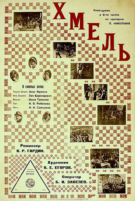 Titulo alternativo: Khmel [Хмель], Historia de una familia [История одной семьи] Dirección: Vladimir Gardin [Владимир Гардин ] Guion: Lev Nilulin [Лев Никулин] Operador:  Boris Zavelev [Борис Завелев] Director artístico: Vladimir Egorov [Владимир Егоров] Productora: VUFKU (Odessa y Yalta) [ВУФКУ (Одесса и Ялта)] Actores:  Nikolay Saltykov [Николай Салтыков] (atamán Khmel), Nikolay Panov [ Николай Панов] (Zagarin, terrateniente), Oleg (Osip) Frelikh [Олег (Осип) Фрелих] (Georgy Zagarin, su hijo), Zoya Barantsevich [Зоя Баранцевич] (Anna Zagarin, esposa de Georgy), Liana Iskritskaya-Gardina [Лиана Искрицкая-Гардина] (campesina), Iona Talanov [Иона Таланов] (Vronsky, administrador), Anna Agramova [Анна Аграмова] (Chernenko, viuda), Aleksandra Rebikova [Александра Ребикова] (Tanya, su sobrina), Boris Chuevsky [Борис Чуевский] (banquero Van Gogh), Fokht [Фохт] (Lyuba Zakharova), Olga Bystritskaya [Ольга Быстрицкая] (Rita Berg, exbailarina), Mikhail Stalsky [Михаил Стальский] (capitán Golde), Leo Negri [Лео Негри] (conde Svirid Makhnitsky), Aleksandr Gromov [Александр Громов] (obrero). Género: Adaptación cinematográfica Datos técnicos: 6 bobinas, 1900 m. Estreno: 22-1-1924 (Leningrado), 17-4-1924 (Moscú). La película no se ha conservado.