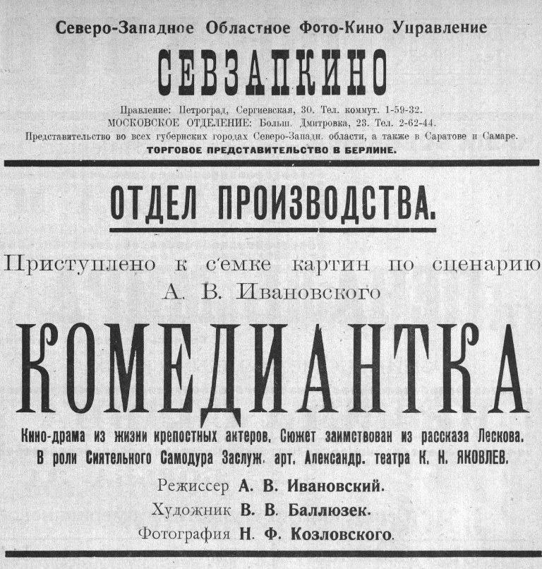 Bibliografía de la época: Pravda, 11-4-1923; Izvestia, 12-4-1923; Kino, M., 1923, Nº 2.