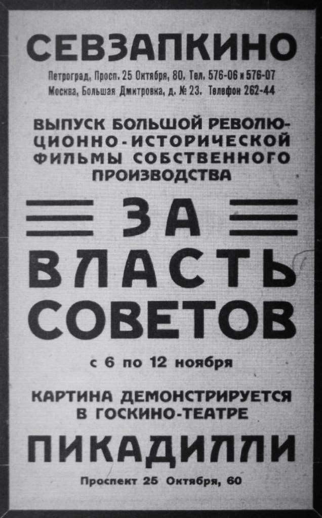Bibliografía de la época: Izvestia, 8.111 1924; Kino-gazeta. M., 1.1У 1924.