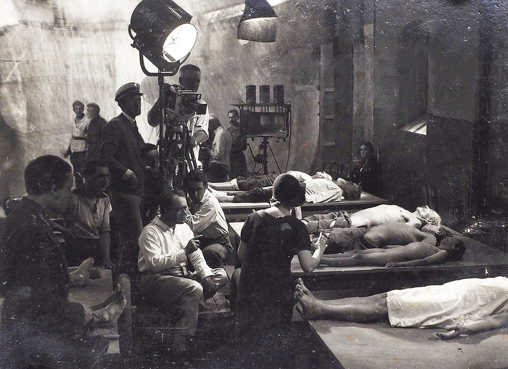 Rodaje de la película «Las sombras del Belvedere». Escena en la morgue. Fuente.
