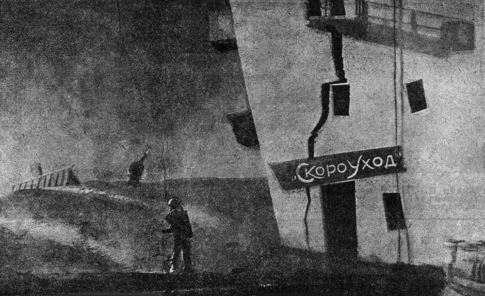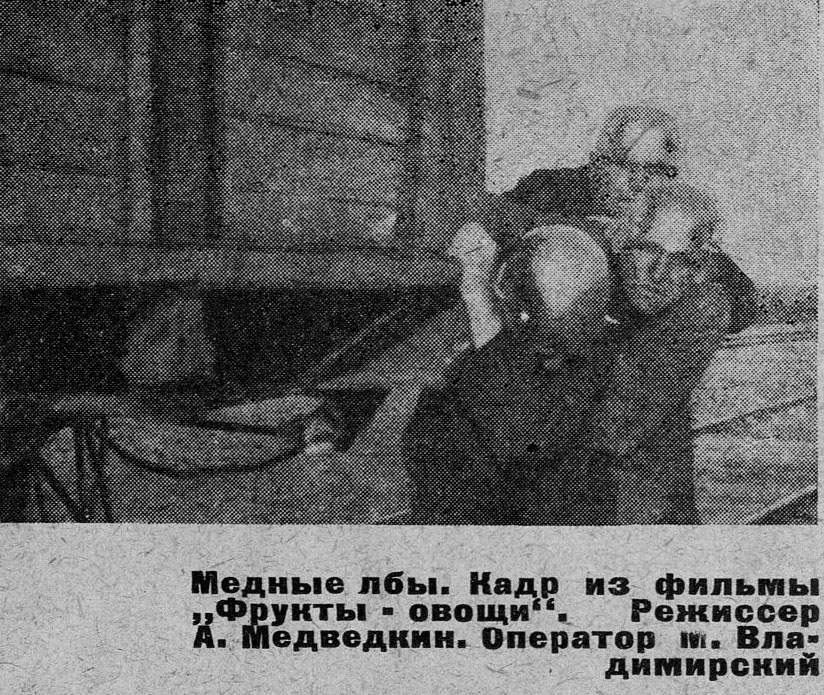 Actores: Sergey Ponachevnyy [Сергей Поначевный] (Sanka), Leonid Kmit [Леонид Кмит] (Fedia, capataz), Pavel Kurzner [Павел Курзнер] (Shkvarkin), Nina Shaternikova [Нина Шатерникова], N. Fassman [Н. Фассман], Aleksandr Melnikov [Александр Мельников]