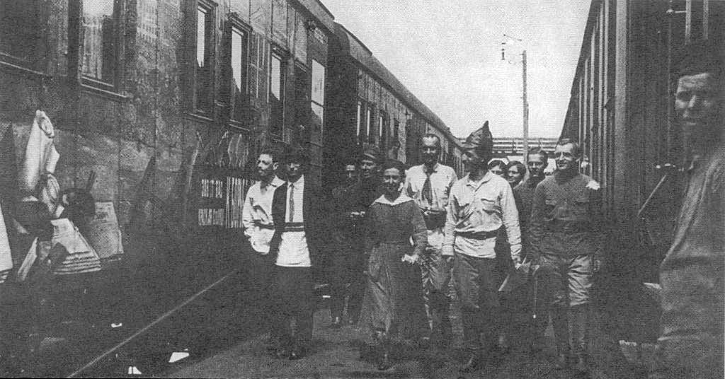 Los soldados de Budionny se encuentran con el tren en Taganrog.